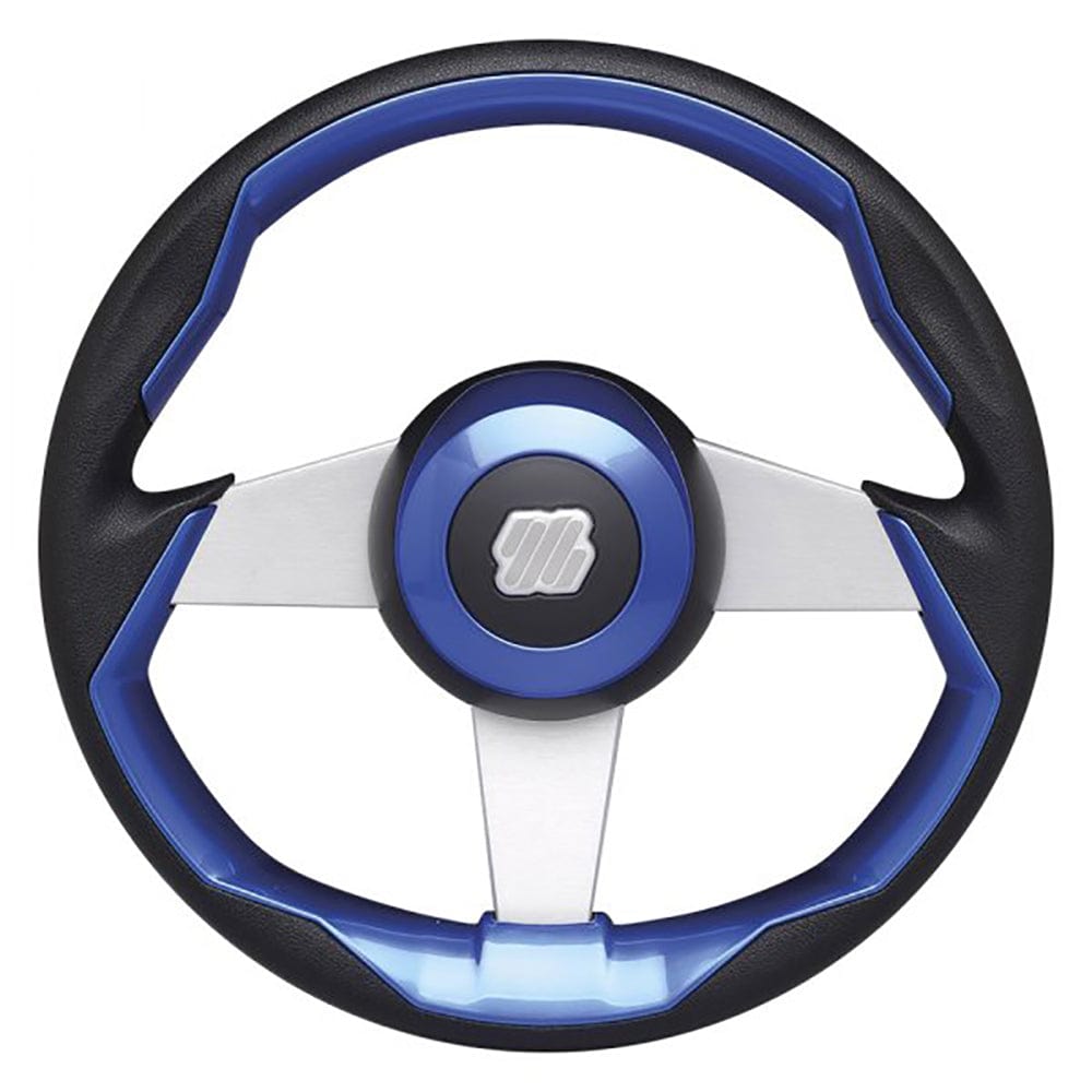 Uflex GRIMANI BL/S 13.8" Dia. Steering Wheel 21227Z, Blue/Black Grip, Aluminum 3-Spoke