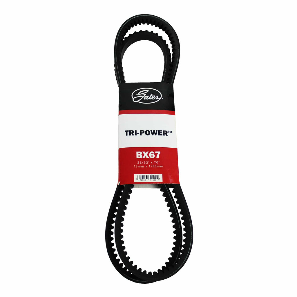 Gates Tri-power V-Belts are built for ultimate performance on heavy-duty drives of classical cross-section. The raw edge construction and special notch design makes this belt perfectly suited for drives requiring small diameter pulleys and back idlers. The patented ethylene EPDM compound construction allows the belt to resist cracking and handle extreme temperatures.
