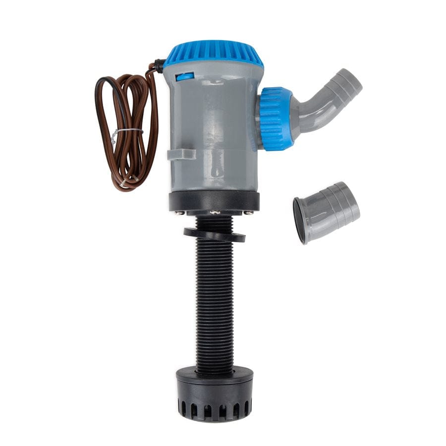This is a self-priming, submersible 12V thru-hull bilge centrifugal pump. It is ideal for all watercraft use. It features ignition protection, low power draw, and it can run dry without damage. Manufactured for easy installation. 800GPH 3/4” outlet and 1100GPH 1-1/8” outlets are both included.