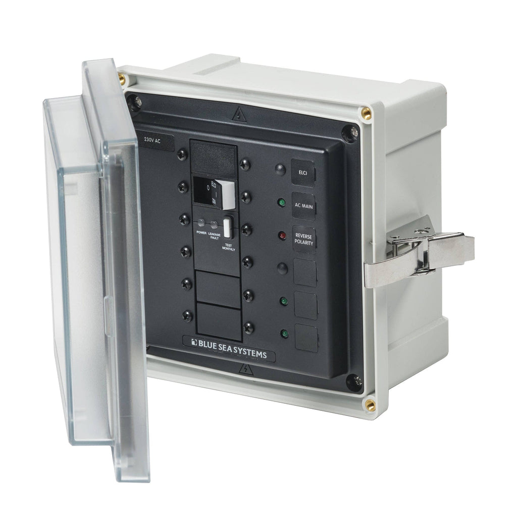 ELCI Main circuit breakers panel enclosure (and for other large frame devices). Meets ABYC E-11 when used with an ELCI Main circuit breaker / mounted 10 feet from the shore power inlet.