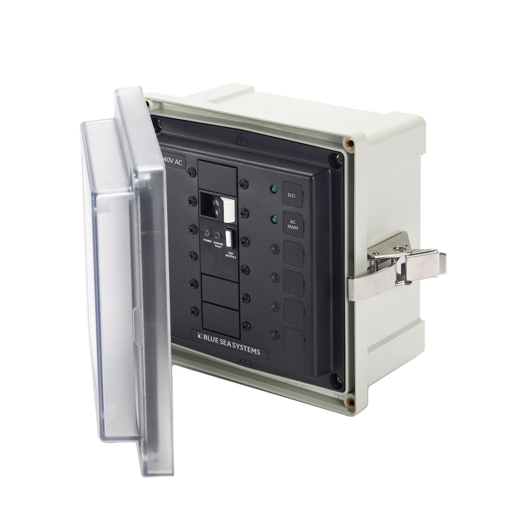 ELCI Main circuit breakers panel enclosure (and for other large frame devices). Meets ABYC E-11 when used with an ELCI Main circuit breaker / mounted 10 feet from the shore power inlet.