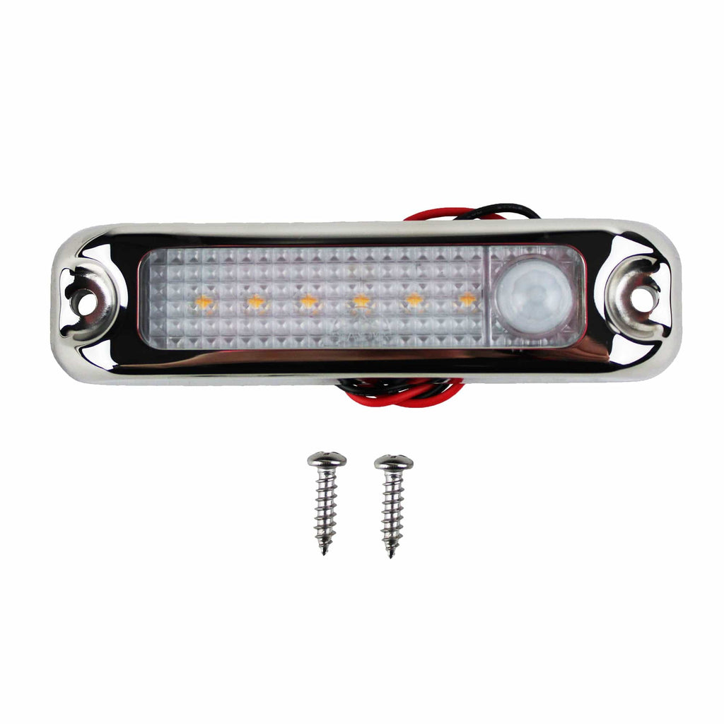 This compact Locker Light is small enough to mount almost anywhere. Made to illuminate inside of lockers, hatches, closets and/or bilges. This compact 4" light with motion sensor and 316 stainless steel trim ring, will automatically turn on when you open the hatch or door. The sensor immediately turns on the light when triggered by a combination of movement within 6 feet and temperature of 98 degrees. The light will shut off after 20 seconds unless there is movement. IP rated for installtion in wetlockers. Works with 12V and 24V systems.