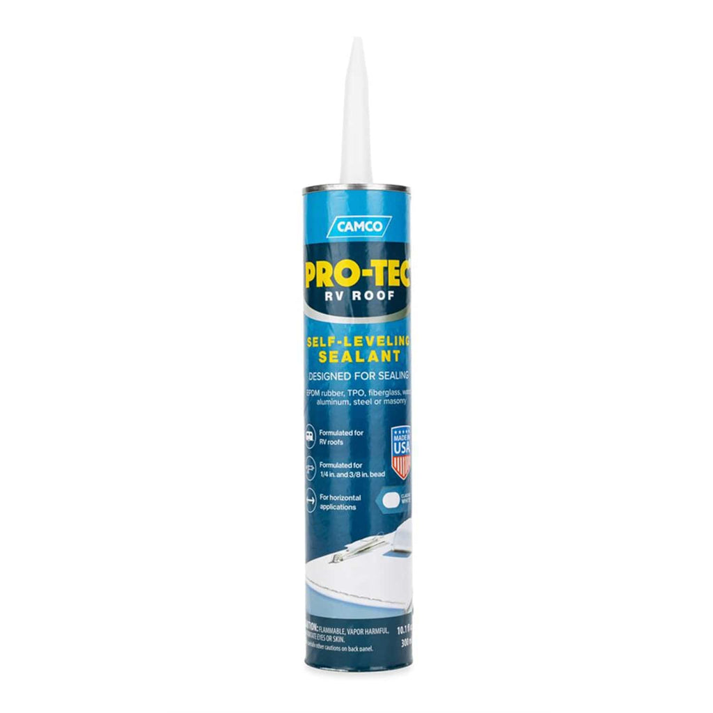 This is Pro Tec Self-Leveling Roof Sealant which creates a strong seal along your RV's roof edges, vent pipes or air vents. It is designed for sealing EPDM rubber, TPO, fiberglass, wood, aluminum, steel, or masonry. The sealant is easy to apply and intended for horizontal applications. This product is formulated for 1/4-inch and 3/8-inch beads.