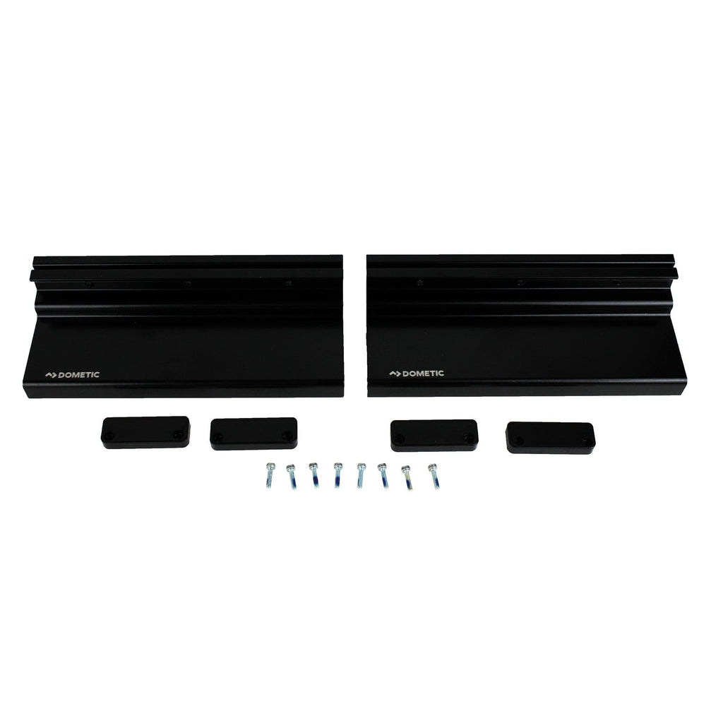 This is a black SlideTopper EZ Awning Adapter Bracket that offers a fast and easy solution to avoid the hassles of having to remove or work around pre-installed prep brackets. This solution improves strength, safety and security while providing a sleek, modern design.