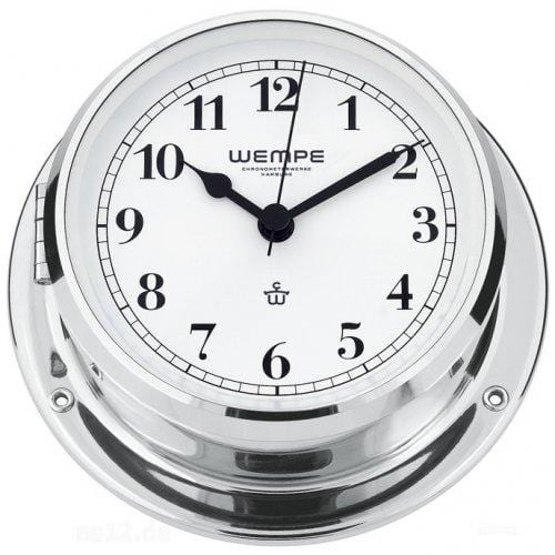 Wempe CW170005 Globaltec Regatta Brass Chrome-Plated Quartz Porthole Clock 140 x 47mm Black/White, Arab.