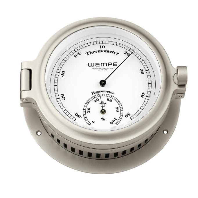 CW190005 Brass Cup Nickel-Plated Thermometer/Hygrometer 140x47mm White/Black