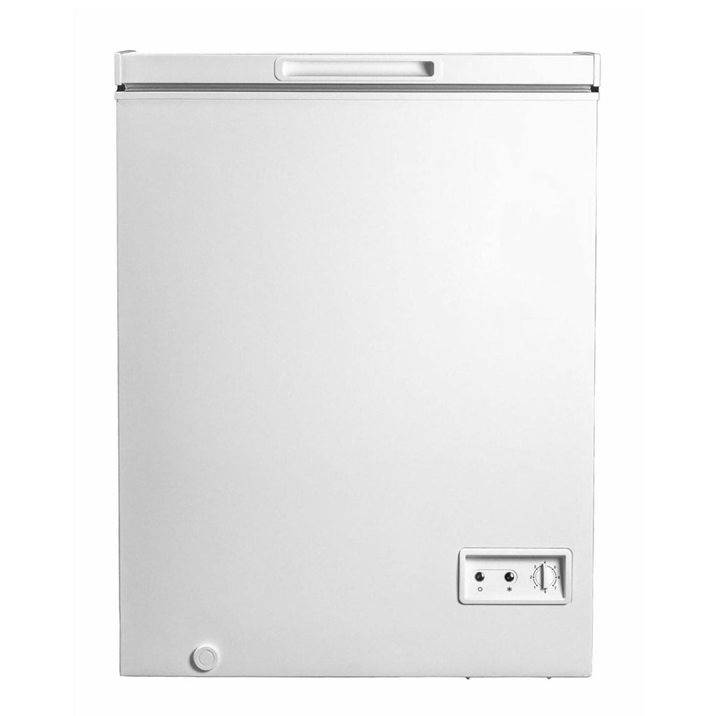 Danby 5.0 cu. ft. Square Model Chest Freezer in White. Store more of your favorite frozen foods and optimize bulk food storage with the reliable & durable Danby 5.0 cu. ft. Chest Freezer. Easily determine if your frozen items are safely preserved with our power-on indicator light, providing a quick and convenient visual confirmation. This model is Garage Ready & with efficient compressor technology is able to maintain optimal performance at external temperatures between 0°F and -110°F (-17°C and -43°C). You’ll be saving money with this Energy Star Rated product, while our 48 hour protection prevents food spoilage in case of a power outage under standard operating conditions. The D-shaped coils are designed to tightly hug the inner walls, optimizing the freezing time, and the front-mounted drain enables hassle-free defrosting or cleaning of the freezer while minimizing any potential mess. The removable basket lets you organize contents efficiently, and the counter-balance hinges keep the lid open at any angle, providing effortless access.