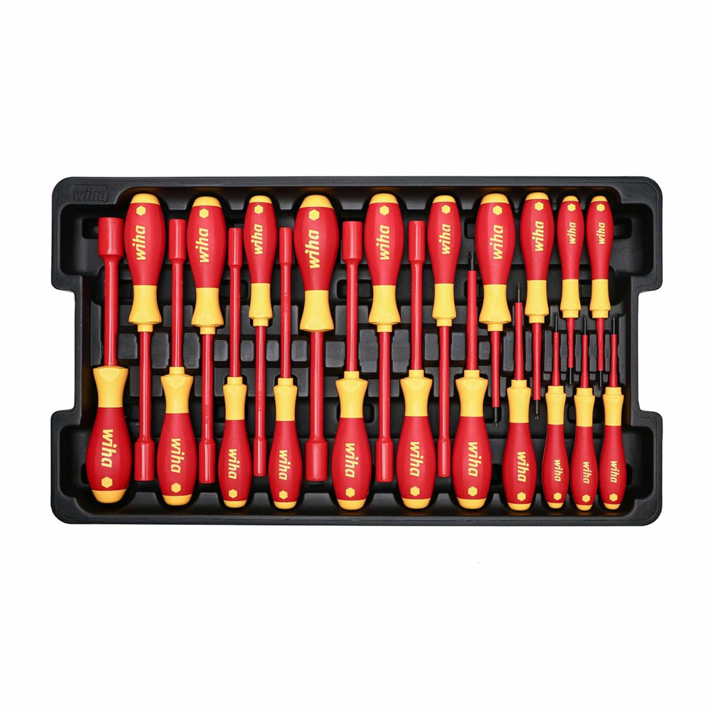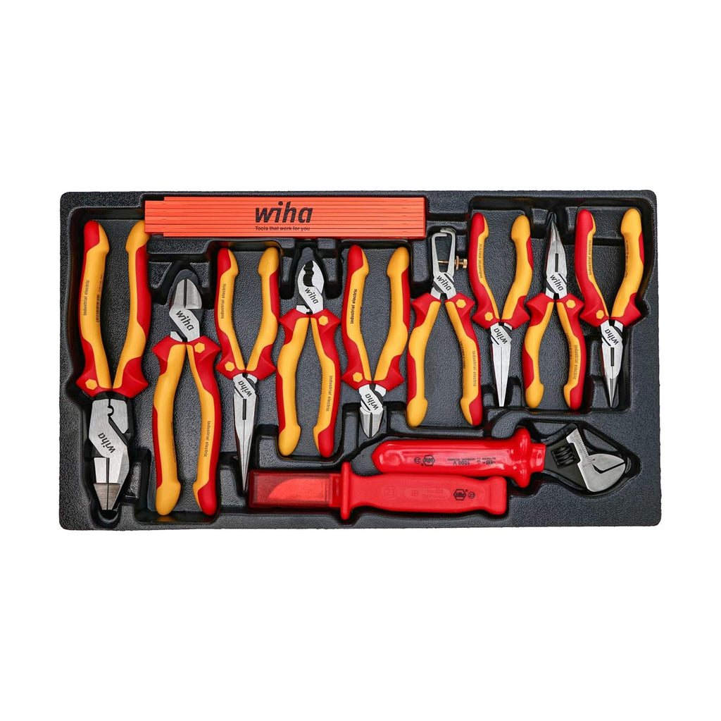 The Wiha 80 Piece Master Electrician's Tool Set will give electricians the comfort of knowing they are equipped with every tool they need to get the job done. All of the tools come conveniently stored in large heavy-duty rolling case. The tools are stored in removable insert trays, keeping the tools organized and secure during transport. This case will make transporting tools from each job site much easier and faster. The case is equipped with a large storage space which offers ample space for more equipment. Every single Wiha insulated tool is individually tested to 10,000 volts AC and rated to 1,000 volts AC (1,500 volts DC) for safety and peace of mind in energized applications. This tool is VDE Certified and meets EN/IEC 60900 testing standards for protection against arc flash explosion, ASTM F1505 standard specifications for insulated and insulating hand tools and CSA testing benchmarks for safety and performance.