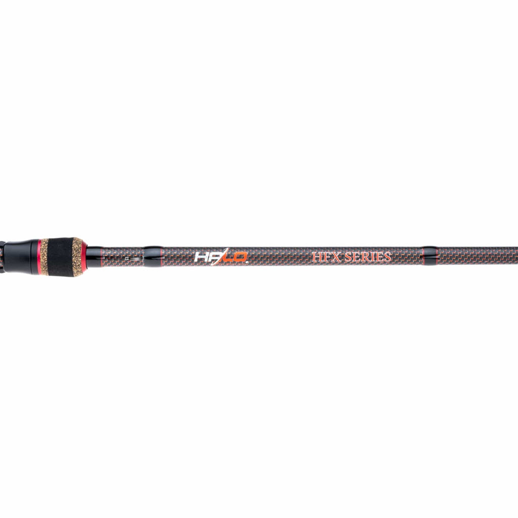 The Halo-exclusive 4Finger reel seat presents an exposed blank design allowing fingers to feel the slightest bait touch. Enhanced sensitivity with integrated Sensi-touch cork composite rings that offer more feel through the grip than conventional foam grips.