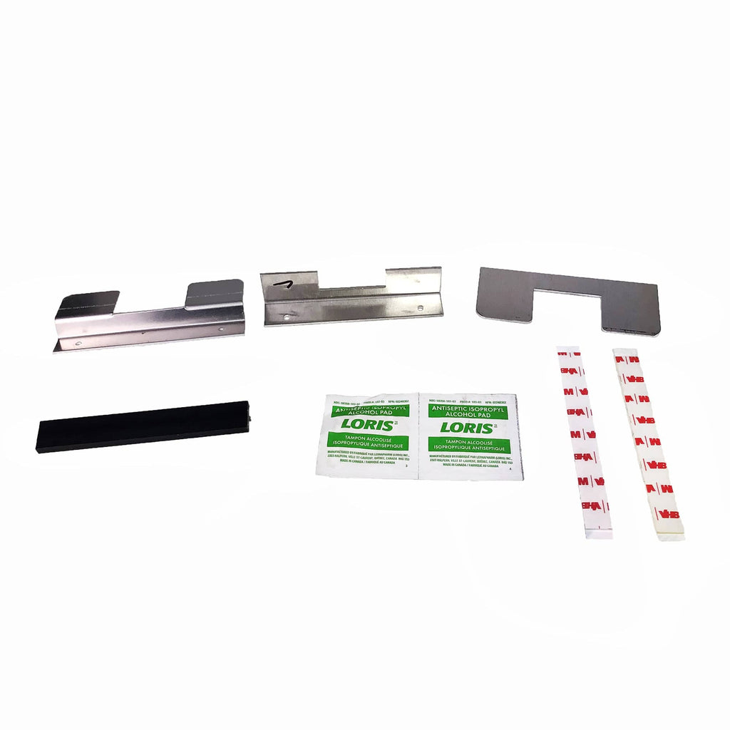This is a Toon Fender attachment system that is adjustable allowing you to hook the fender on the rail and adjust it up or down. It also has a bottom hook that connects to any of eight receiver attachments that are built into the PVC fender. This hook design attaches to the aluminum trim around the deck of the pontoon boat. In addition, there is a block of 6″ x 6″ E.V.A. foam with velcro attached to the fender for easy adjustment and extra protection. Finally, aluminum hook “stops” that prevent the fender from sliding on the rub rail.