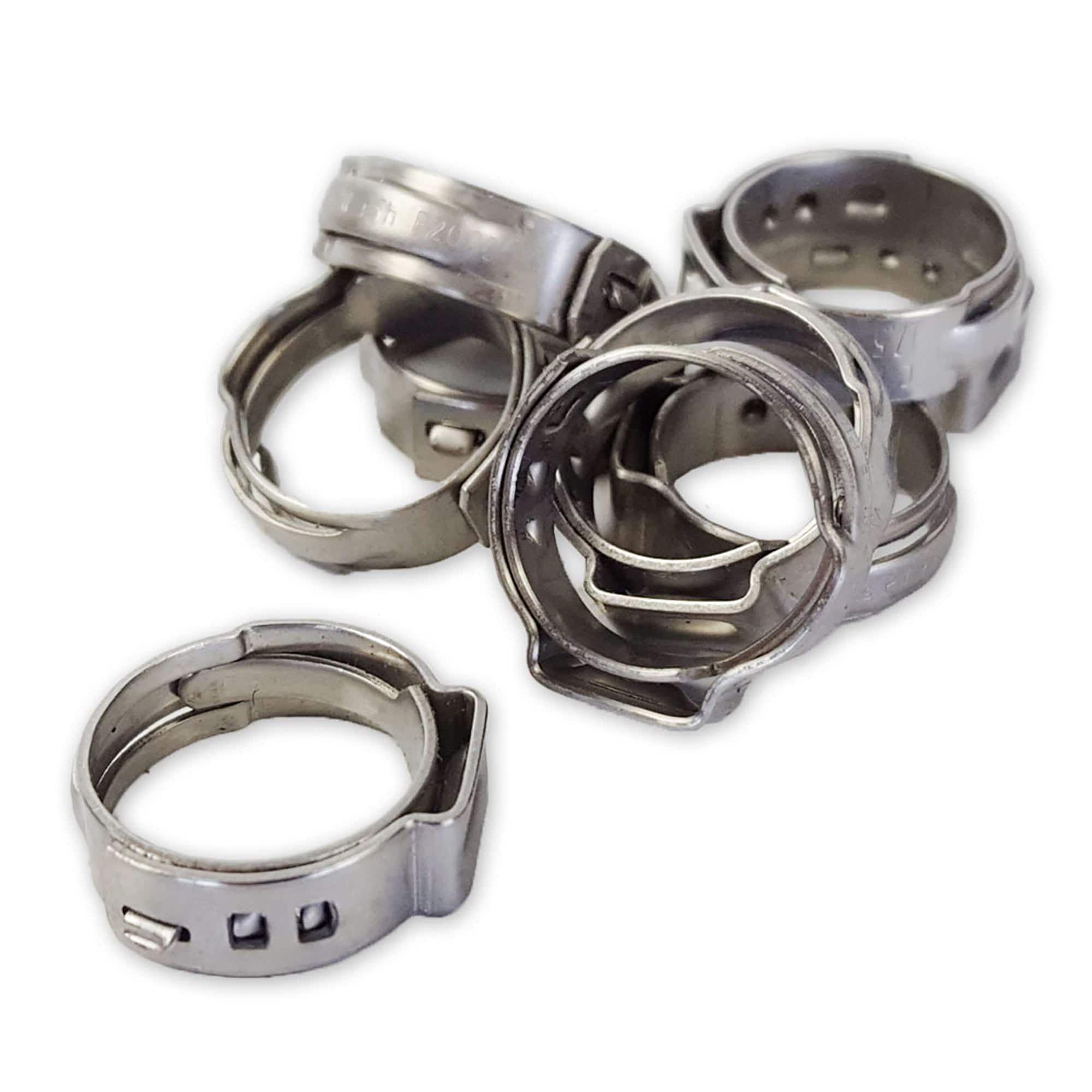 The Esco 61119 3/4" PEX Oetiker Clamp, conveniently packaged in sets of 10, provides a secure and reliable solution for fastening 3/4-inch PEX tubing connections. Precision-engineered, these Oetiker clamps ensure a tight and durable seal, offering peace of mind for your plumbing system. Esco's dedication to quality craftsmanship makes the 61119 PEX Oetiker Clamp a trustworthy choice for various PEX applications, providing both performance and reliability in securing larger PEX tubing connections.
