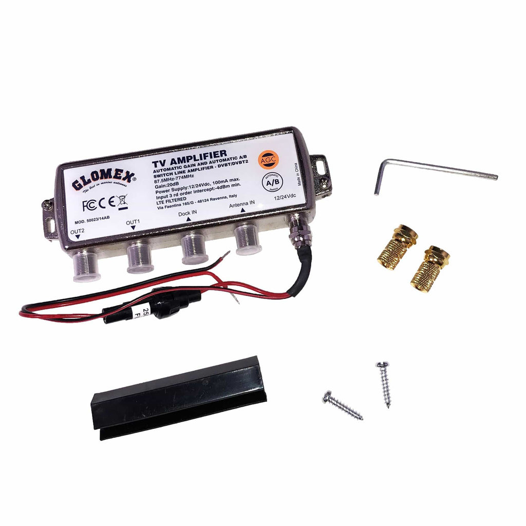 Glomex 50023/14AB Automatic Gain Control Amplifier, 12/24 V DC, 2 Tv Outputs