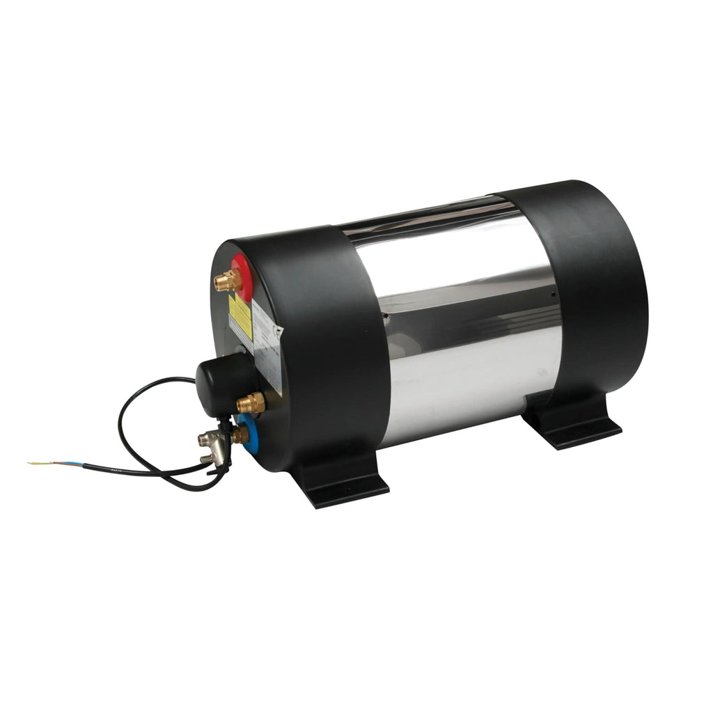 This is an AquaH marine water heater. AquaH - is a series of AISI 316 stainless steel water heaters, this 1200W, 120V model has a storage capacity of 30 Liters (8 gallons). Dual heating as standard - electrical heating and indirect heating based on a second heat source, for example the cooling system from the Marine engine or generator set.