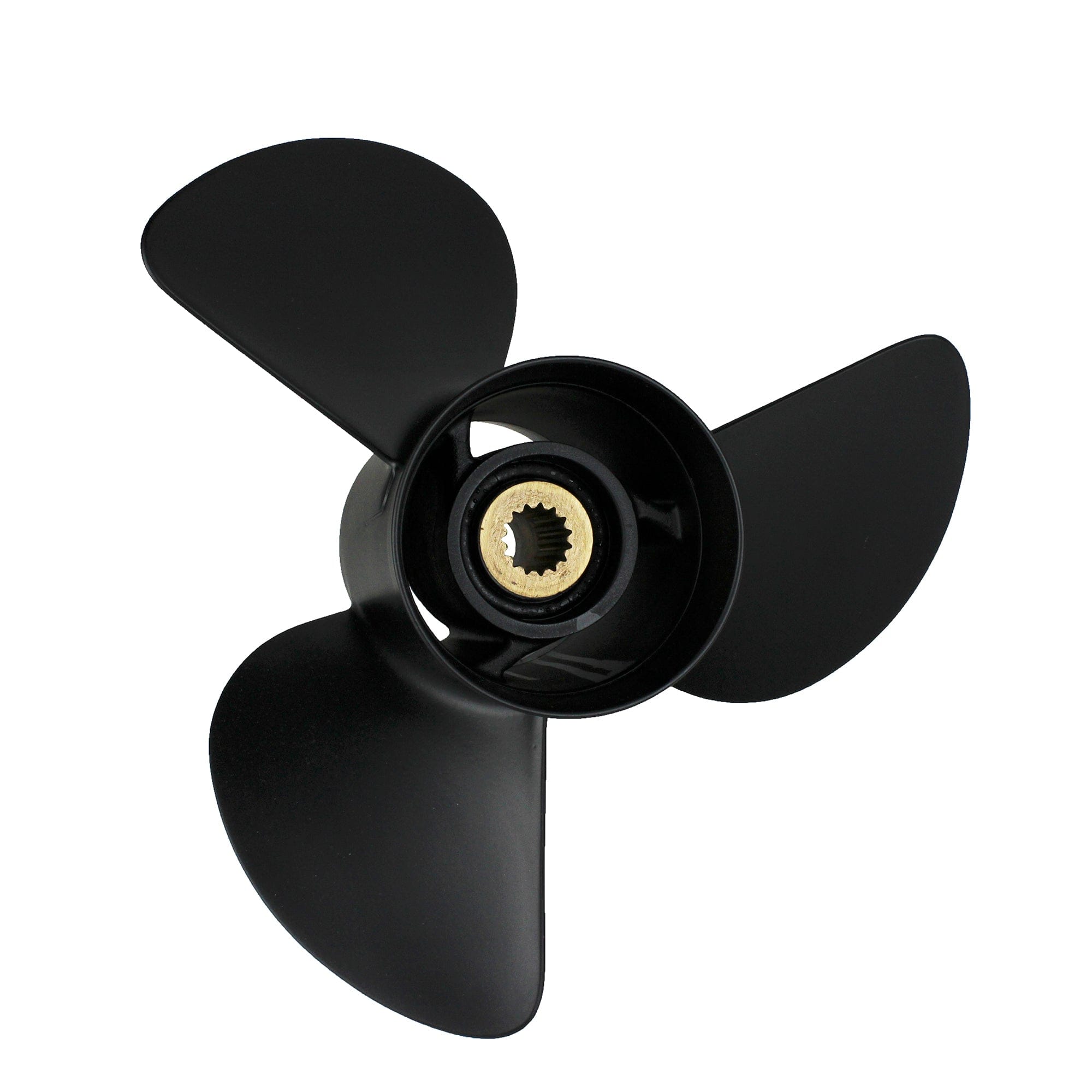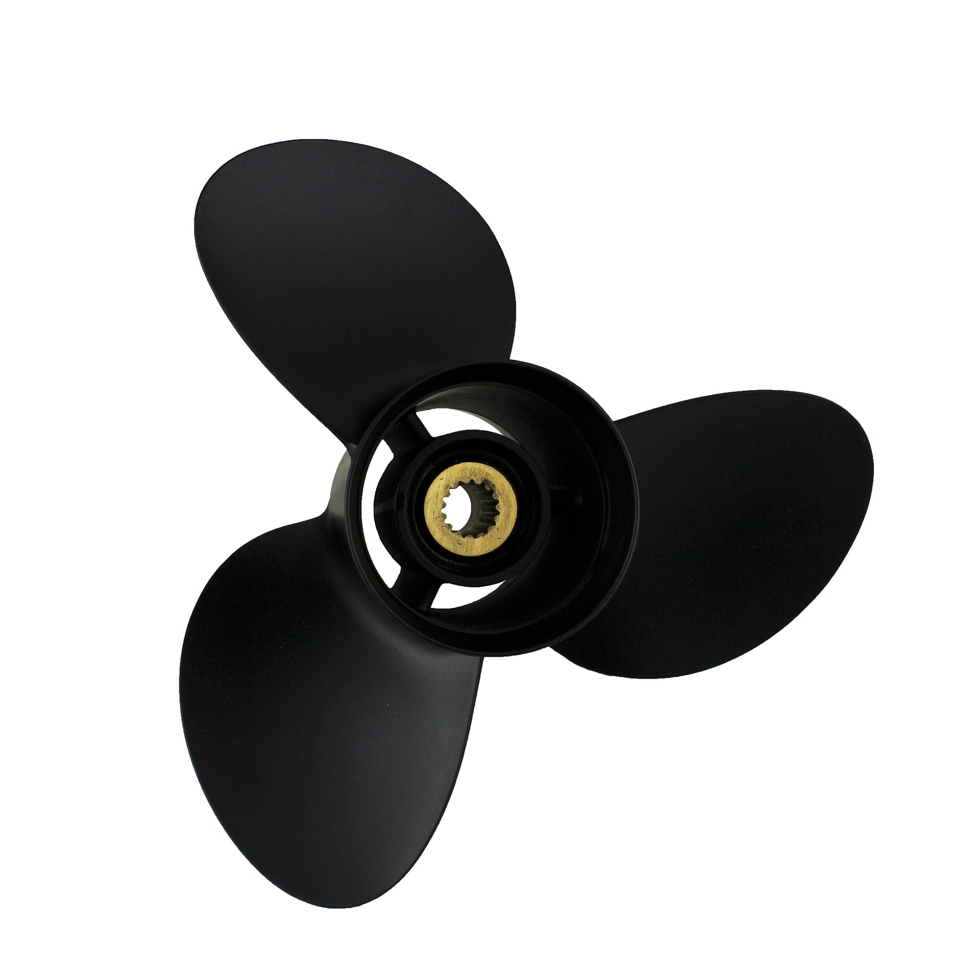 This is an aluminum Yamaha Evolution Class E propeller pressed in hub with 14" dia. x 19" pitch, 3 blades, 150-300 HP, and 15 splines for 4-3/4" gearcase.