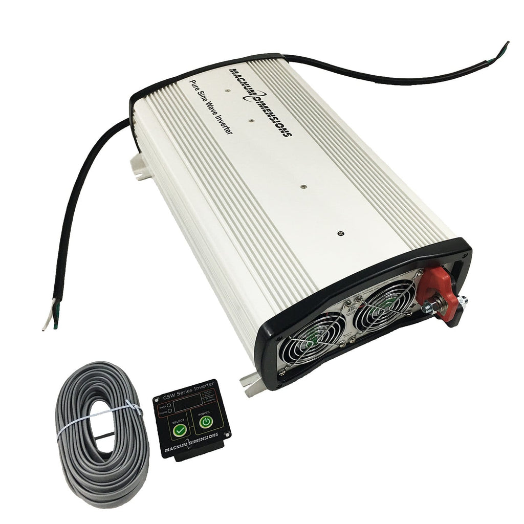 This 2,000 watt inverter helps you make the most of that stored power. The Magnum CSW2012-HX hardwired pure sine wave inverter offers impressive, reliable AC power strong enough to operate power tools. This system, in your boat or RV, is simple to operate and loaded with features. It comes with a transfer switch hardwire, and is encased in a slimmed down unit to fit in smaller spaces.