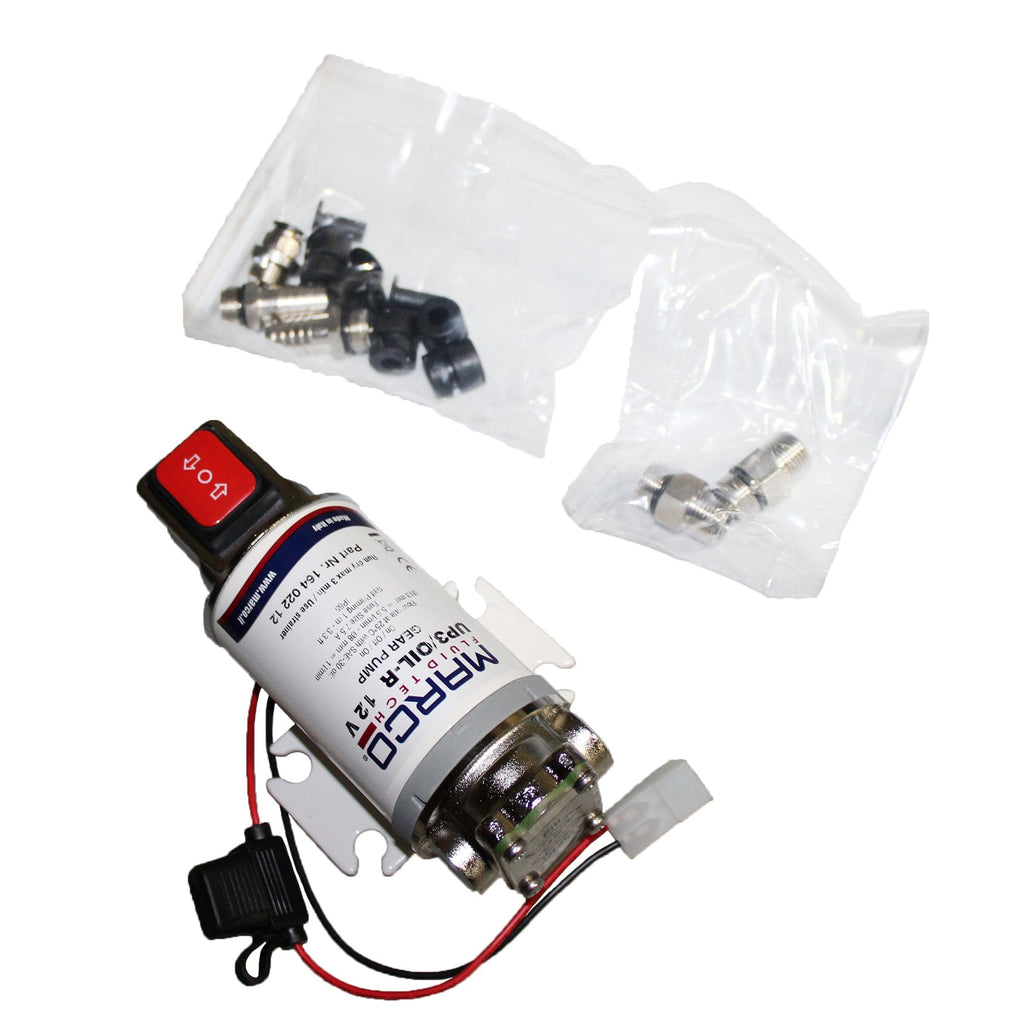 This is the Marco M164-022-12 UP3/OIL-R Oil Transfer Pump with integrated reversing switch from Mate; it is a Self-priming electric pump with helical bronze gears for transferring lubricating oils and viscous liquids. Nickel-plated brass body and stainless steel shaft. Main applications: draining engine sumps and lubricating engines.