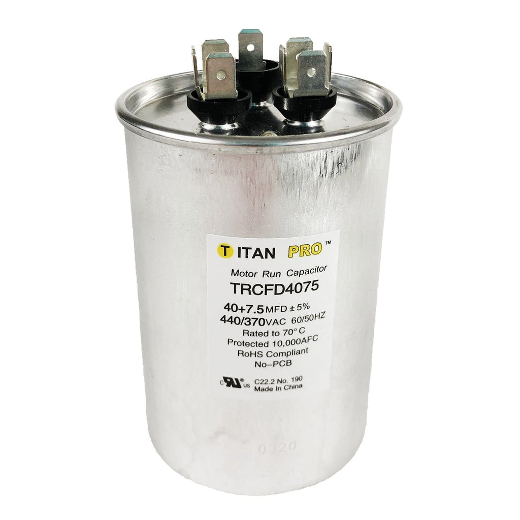 TRCFD4075 TITAN PRO Run Capacitor 40+7.5 MFD 440/370 Volt Round