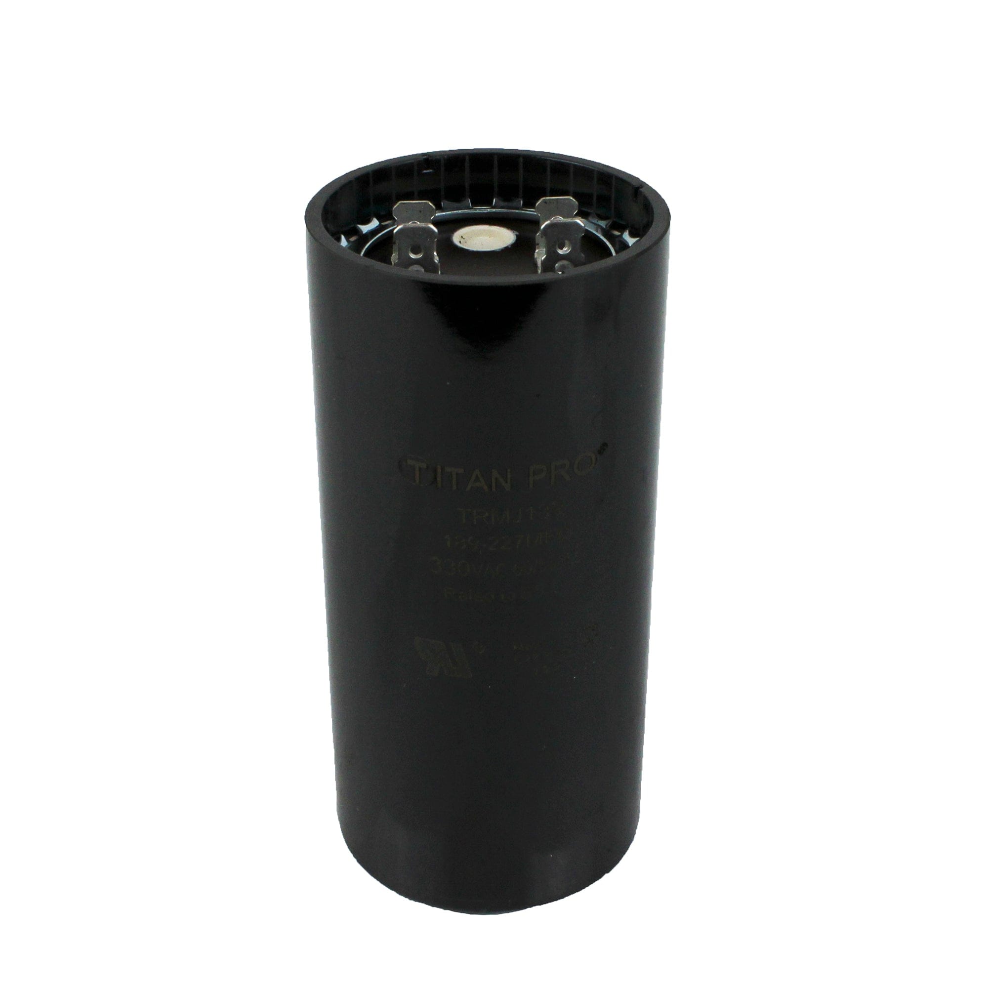 This is a Titan Pro 189-227 MFD 330-volt Start Capacitor; it is designed specifically for replacement of OEM single phase motor capacitors. These units are housed in a rugged phenolic resin case. All units are PCB-free.