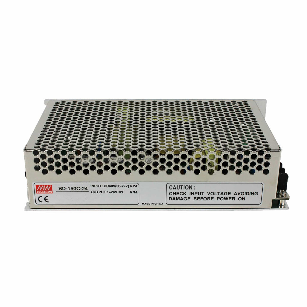 This is a 24-volt enclosed switching converter with screw terminal connections.