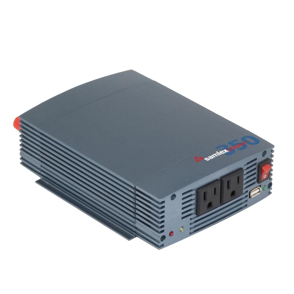 The Samlex SSW-350-12A is a lightweight 350 watt 12 volt pure sine inverter that converts 12 volts DC power to 120 AC volts.