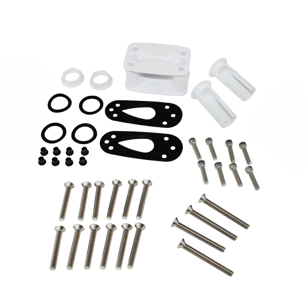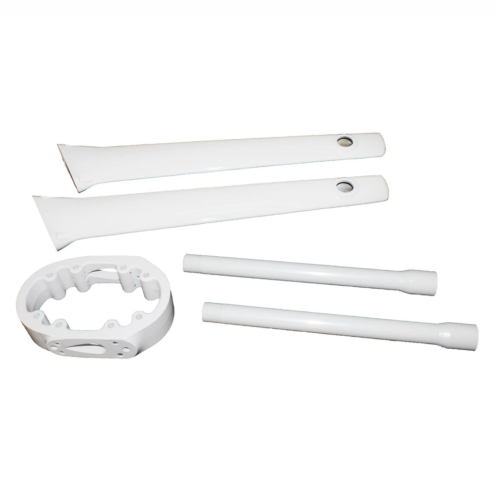 This three piece kit consists of a mid-section and two spreaders. Four bolts are used to secure each spreader to the midsection. The spreaders are tapered and angled aft so that for whatever you decide to put on there it will not interfere with the radar or satdome that you have on your mount. All the wiring from your GPS unit or antenna can be routed internally through the spreaders and into the mount itself. Not only does this help with security but it also makes for a very nice and clean installation. All the parts that make up the spreader kit are bolted together with rubber gaskets in between each part to prevent any water intrusion.