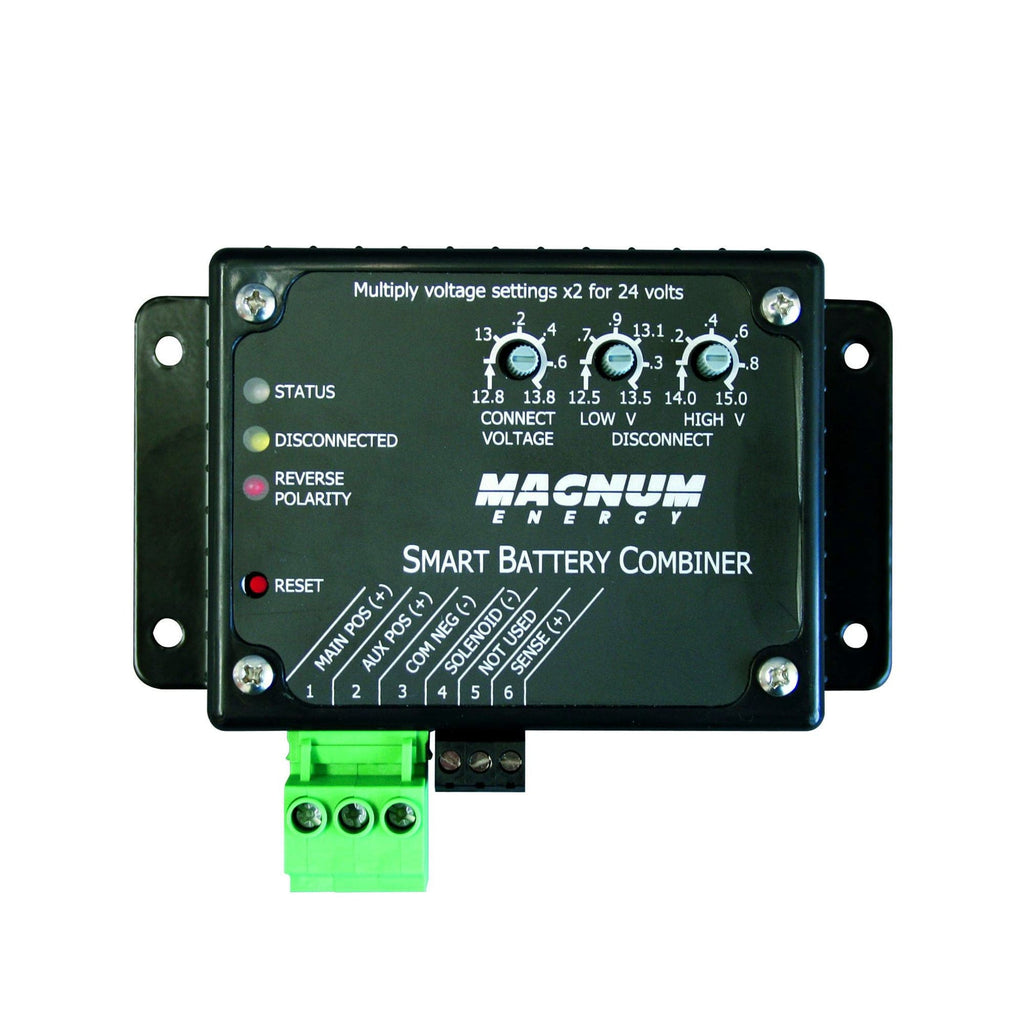 This is an easy-to-use stand alone 2-bank battery combiner and isolator for 12 and 24 VDC systems. It is designed to monitor and charge a second battery using a portion of the current that is charging a main battery.
