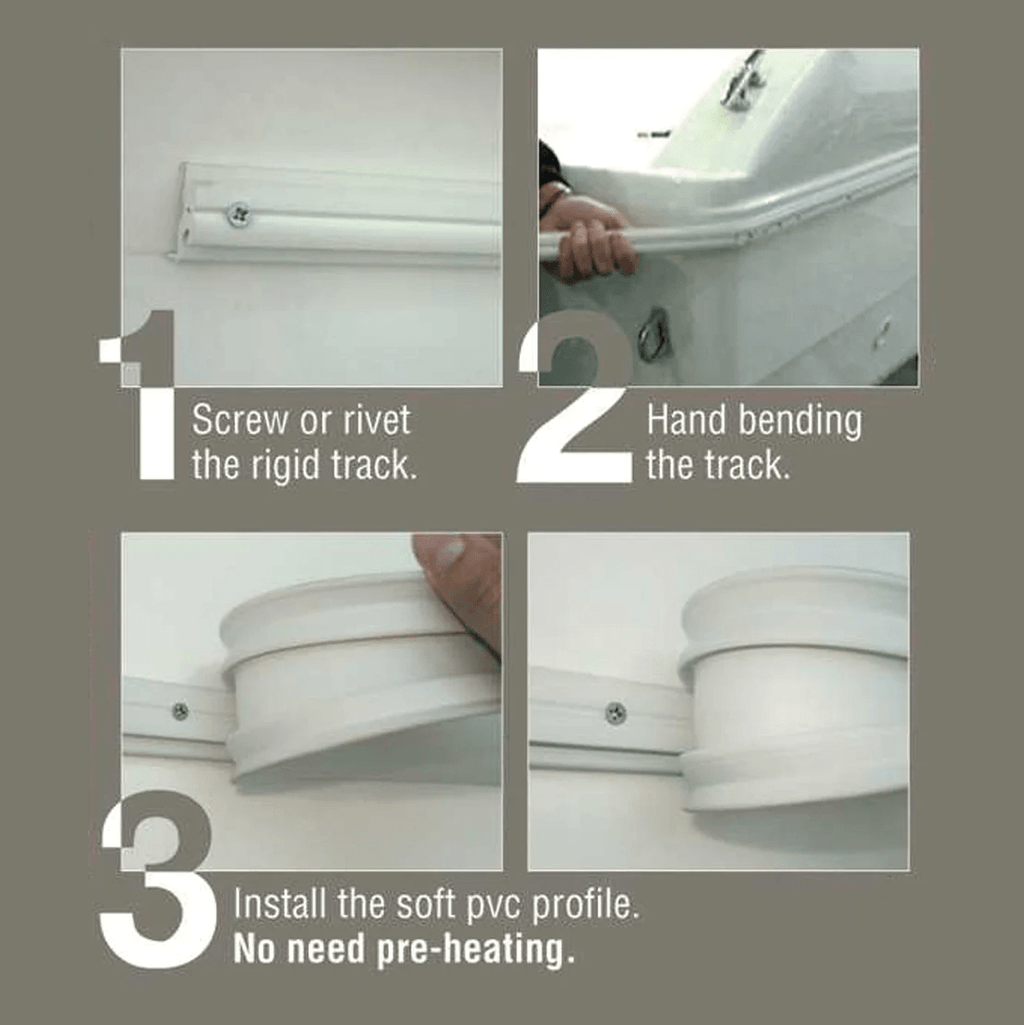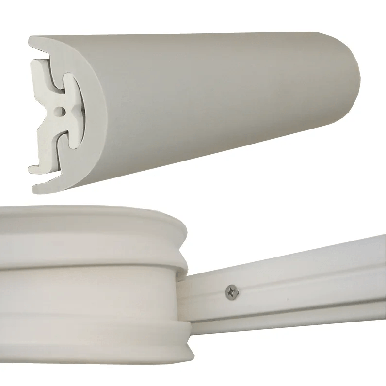 One of the standout advantages of the Radial Rub Rail is its ease of installation, requiring no special tools. Its flexible PVC cover allows for easy fitting, even in cold weather, eliminating the need for heating. Once installed, the track sections are fully concealed by the cover, providing a smooth and streamlined appearance. The kit comes with all the necessary components, including a continuous roll of soft rub rail cover, the appropriate number of semi-rigid vinyl mounting track sections, 2 vinyl end caps, and 1 vinyl joint-cover cap.