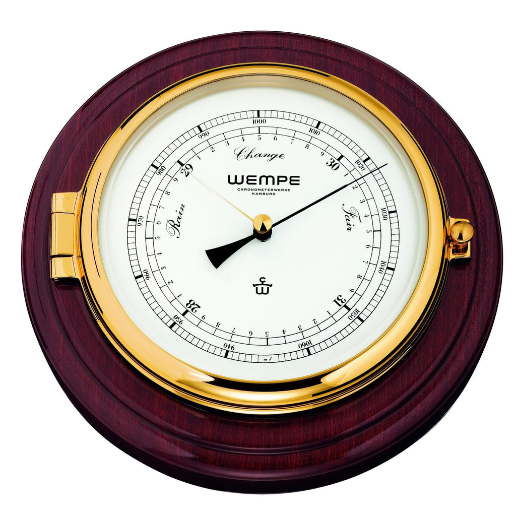 CW400002 Skipper Brass/Mahogany Barometer 1-Diaphragm 210 X 50mm White/Black Hpa/Inch