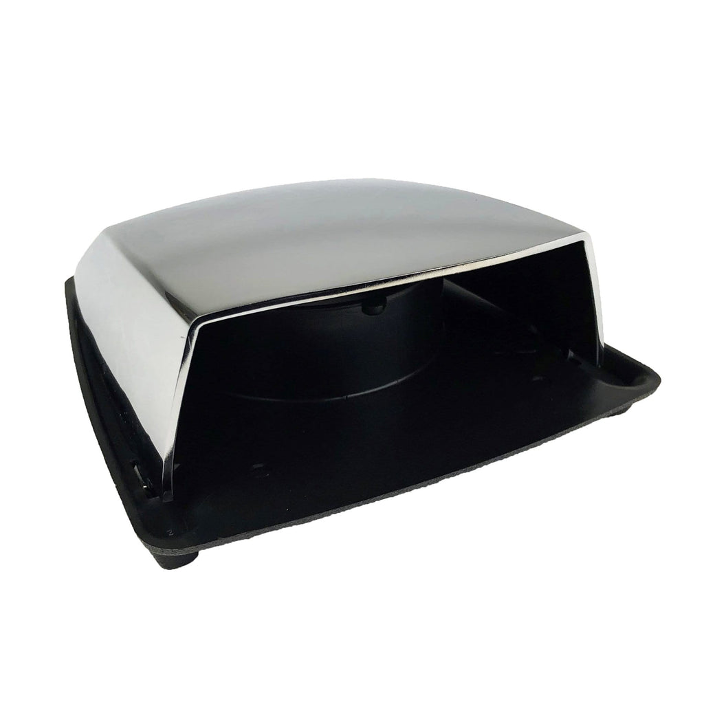 This vent is manufactured to install by fastening as a complete unit from inside or outside the hull. Ventilation hose (not included) twists into the bottom of the box to form a raised water barrier. Plastic vents resist corrosion. All collector boxes and vents are designed for intake or exhaust and meet ABYC H-2 cross sectional area requirements. For use with 3" I.D. wire-supported ventilation hose. Features flexible hose flange that is screwed onto hose, then vent snaps onto the flange. Vent constructed of chrome-plated diecast Perma-Plate Zamak. Flange is non-corrosive plastic.