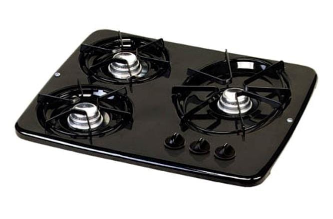 Atwood Wedgewood Vision cooktop. Fits nicely in tight spaces. Has linear valves that can adjust the burner from simmering to boiling extremely quickly and efficiently. The Atwood 56471 is a 3 burner, match light, drop-in cooktop.