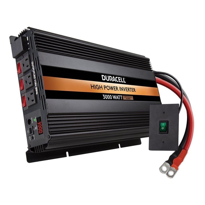 This is a Duracell 3000-Watt Inverter which supplies up to 3000 Watts of continuous power and 6000 Watts of peak power using your vehicles battery current. This rugged inverter converts vehicle power into usable household AC power.