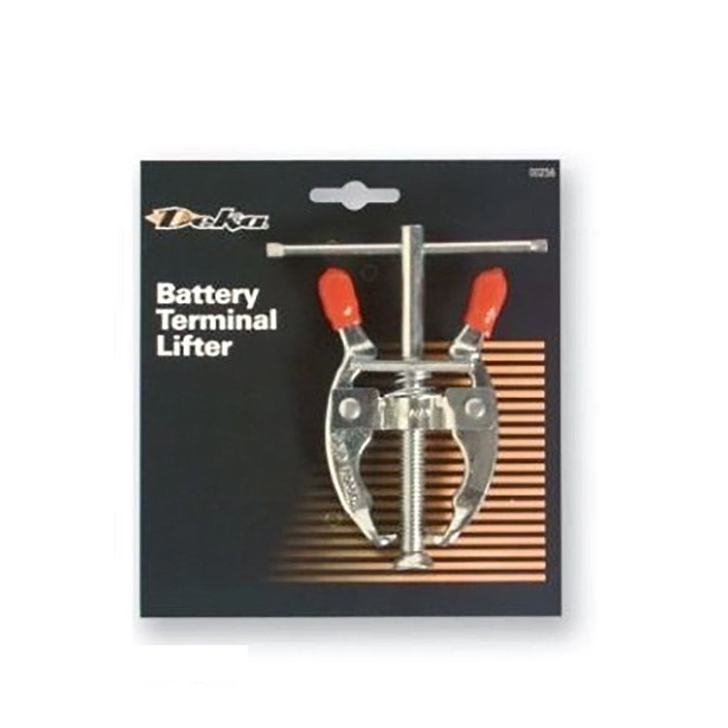 Lift that old battery terminal clamp off without doing damage to the post using a Deka Battery Terminal Lifter. This device, made of strong forged steel, gives you maximum strength and is easy to use to save your battery posts.
