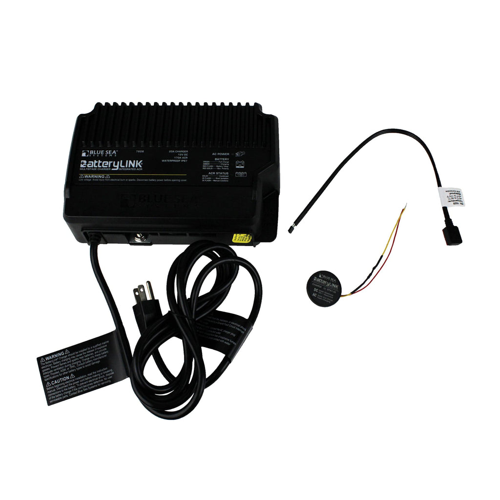 • Charge two batteries at or away from the dock with a 20A multistage battery charger and integrated 170A Automatic Charging Relay (ACR)