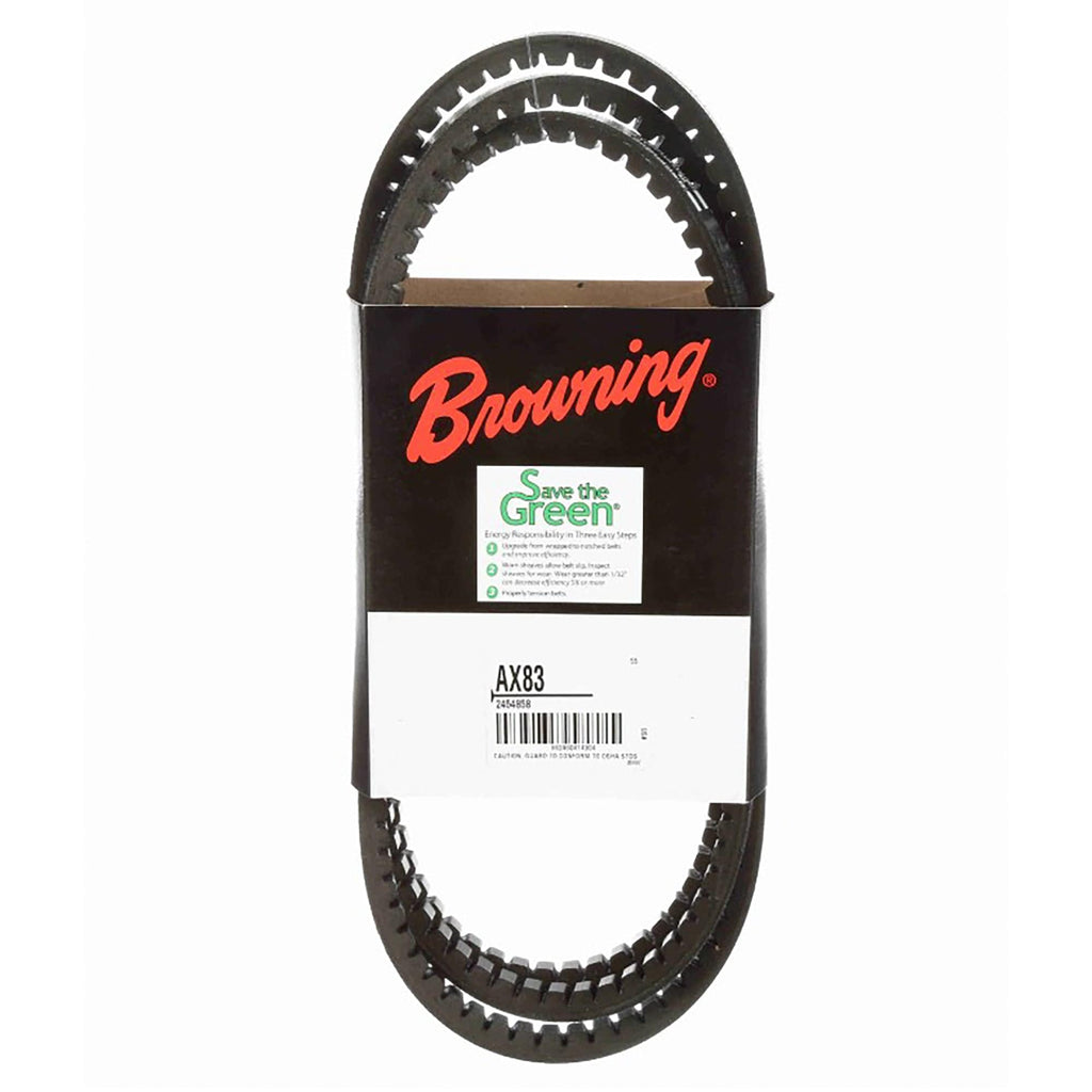 Optimize your machinery's performance with the Browning AX83 AX Section 1 Band Cogged V-Belt. This premium belt features a cogged design for enhanced flexibility and grip, ensuring efficient power transmission and reduced slippage. Built for durability, it provides reliable and long-lasting operation, making it ideal for demanding applications.
