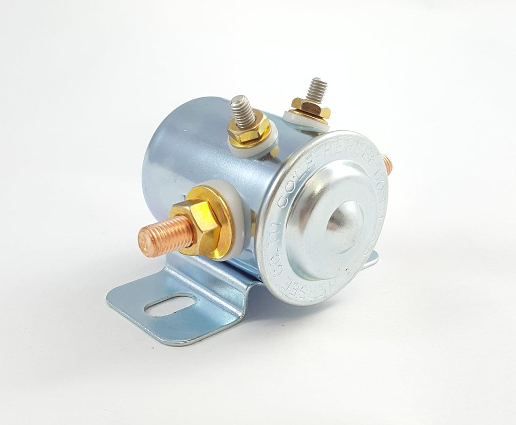 The Cole Hersee 24213 is a 12V, 200A Continuous Solenoid, designed with a plated steel housing, single-pole, single-throw (SPST) circuitry, and normally open contacts. It comes individually boxed, featuring a 12V coil with a coil impedance of 17.5 ohms. The solenoid is insulated, with studs electrically isolated from the housing, making it suitable for handling high current loads.