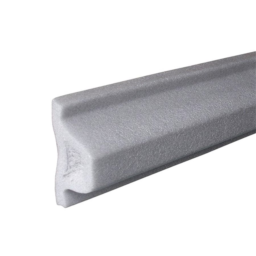 This is an extruded U.V. Stabilized polyethylene foam bumper. It is contoured at the back so it can be mounted both horizontally on your dock or vertically on pilings. It features a beveled edge which helps deflect your boat fenders, so they won’t catch under the profile. The light grey color matches up with the natural color of weathered wood. Screws are included.