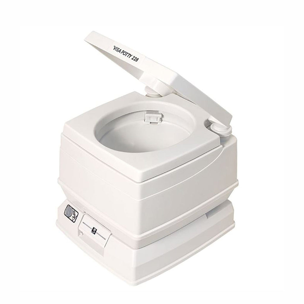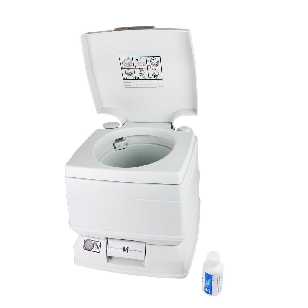 This is an 8L 2-section portable toilet, it features waste and water level indicators with leak and odor proof seal. This is an ideal choice for marine or RV use.
