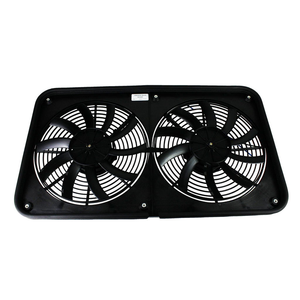 This is a dual 12-inch shrouded low-profile puller “S” blade fan with (2) 225-watt motors.