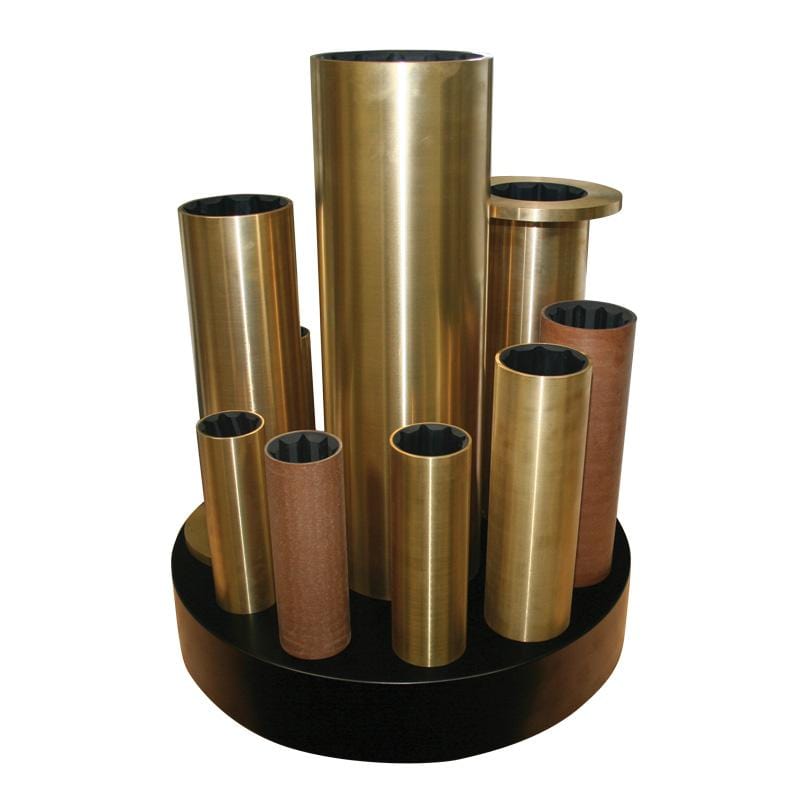 Aqualube bearings are manufactured with longitudinal grooves that form a hydrodynamic wedge, or water film between the shaft and the bearing, even during slow speeds. This water film allows shock absorption reducing vibration and noise to minimize wear. Aqualube bearings are manufactured from chemical and oil resistant nitrile rubber which are available with brass and non-metallic (Phenolic) shells to fit many different applications. Every bearing is inspected to ensure quality.
