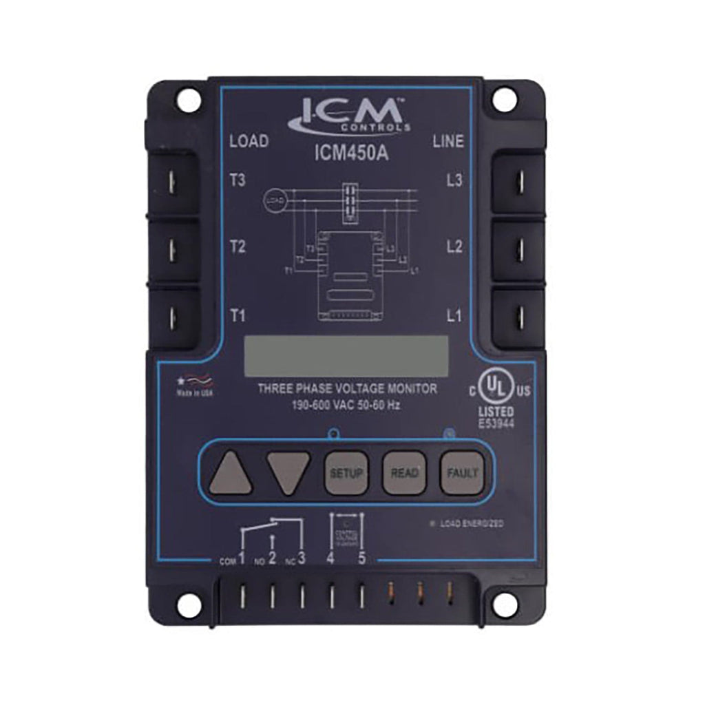 The ICM450A was specifically designed to protect motors and other 3-phase loads from premature failure and damage due to common voltage faults such as voltage unbalance, over/under voltage, phase loss, reversal, incorrect sequencing and rapid short cycling.