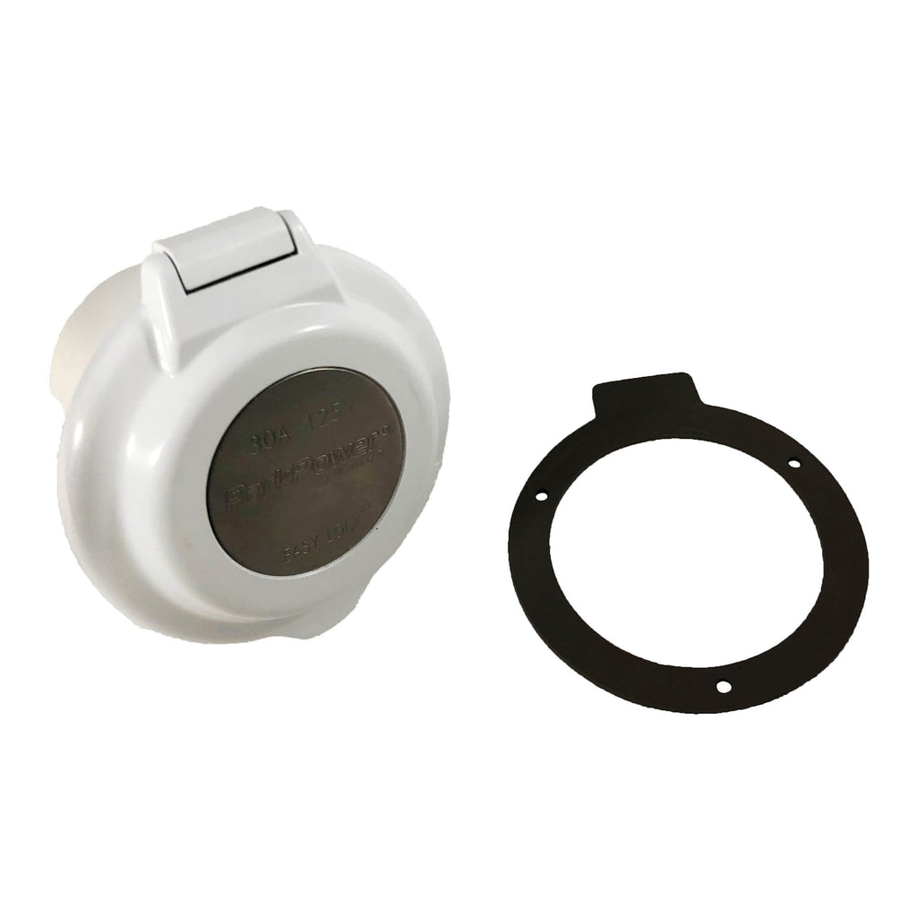The 304EL-BRV is a 30A, 125V, contour power inlet with a stainless steel trim