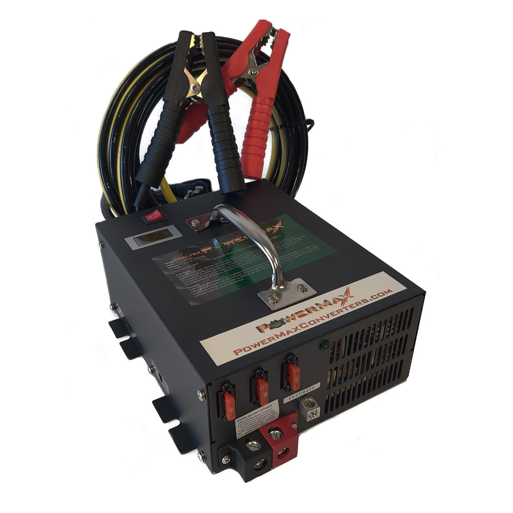 The Powermax PMBC-55 55 amp 12 volt converter charger is a state of the art battery charger using advanced switch mode technology t0 provide a constant supply of clean power.