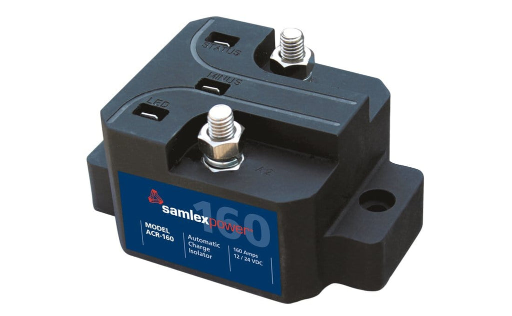 The Samlex ACR-160 automatic charge isolator combines battery banks for charging and isolates them when charging has stopped.