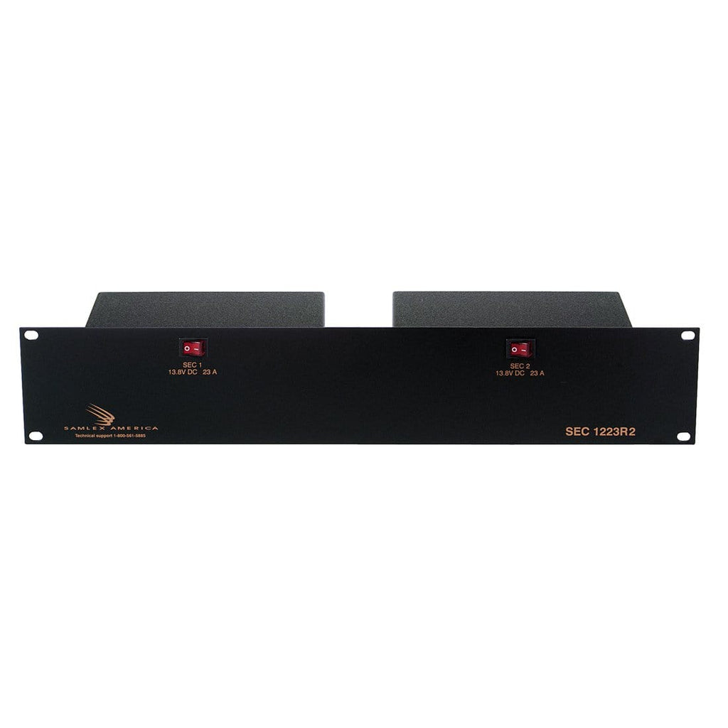 The Samlex SEC-1223R2 is a UL-60950-1 approved ac-dc power switching power supply that provides a highly regulated dc output voltage of 13.8 volts at 23 amps and comes mounted on a 19" 2u size rack plate.