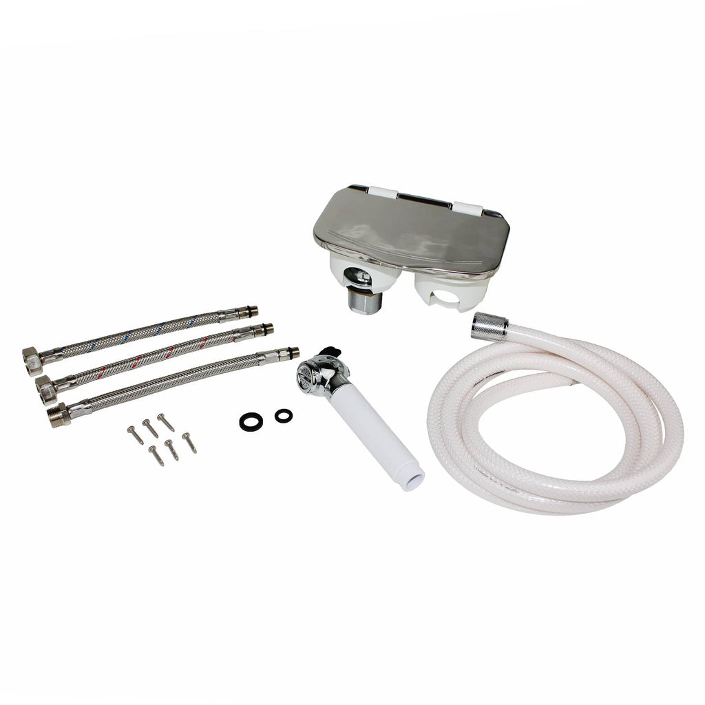 Scandvik 12141 stainless steel recessed transom shower with mixer. Push-button spray handle with 6' nylon hose.