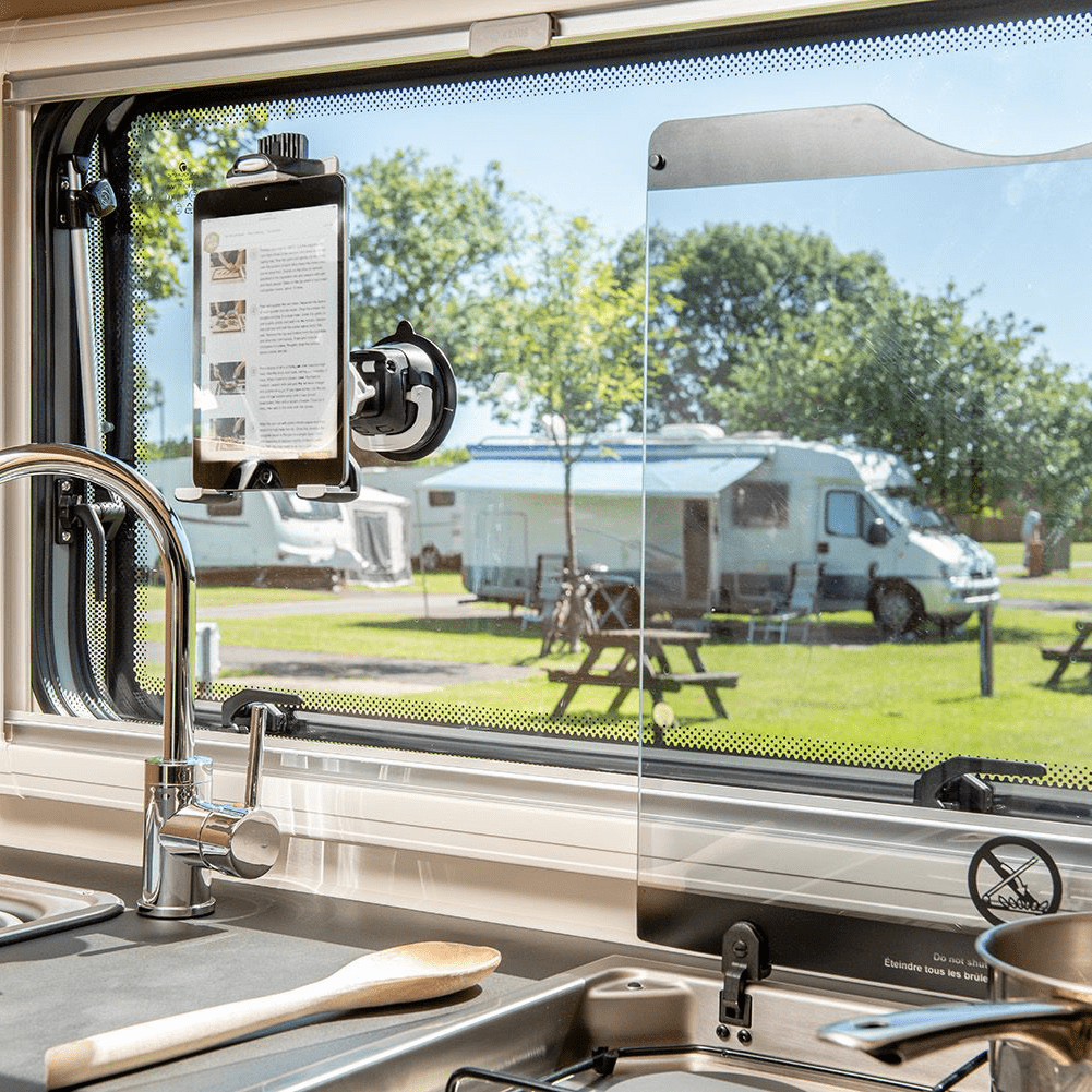 The tablet clamp top plate is ratchet adjustable and can securely hold mini and full-size tablets, accommodating devices from 125mm to 220mm (5-8¼ inches) in size. The 360° body allows for instant installation onboard, providing a reassuring click to securely lock and release your device. Its metal-on-metal locking system ensures your electronics stay firmly in place, providing a reliable mounting solution for your tablet.