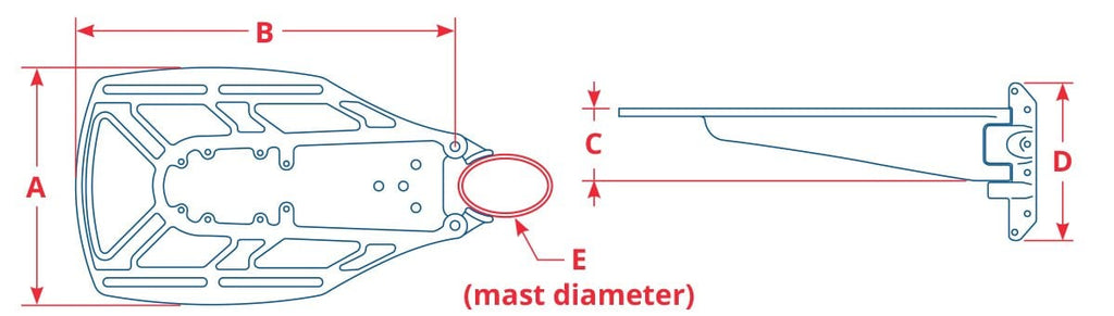 Seaview Mast Mounts are manufactured to have the radar or satdome as close as possible to the mast. Ultra-heavy duty mounting feet and rivets are used to secure the Mast Mount to the mast.