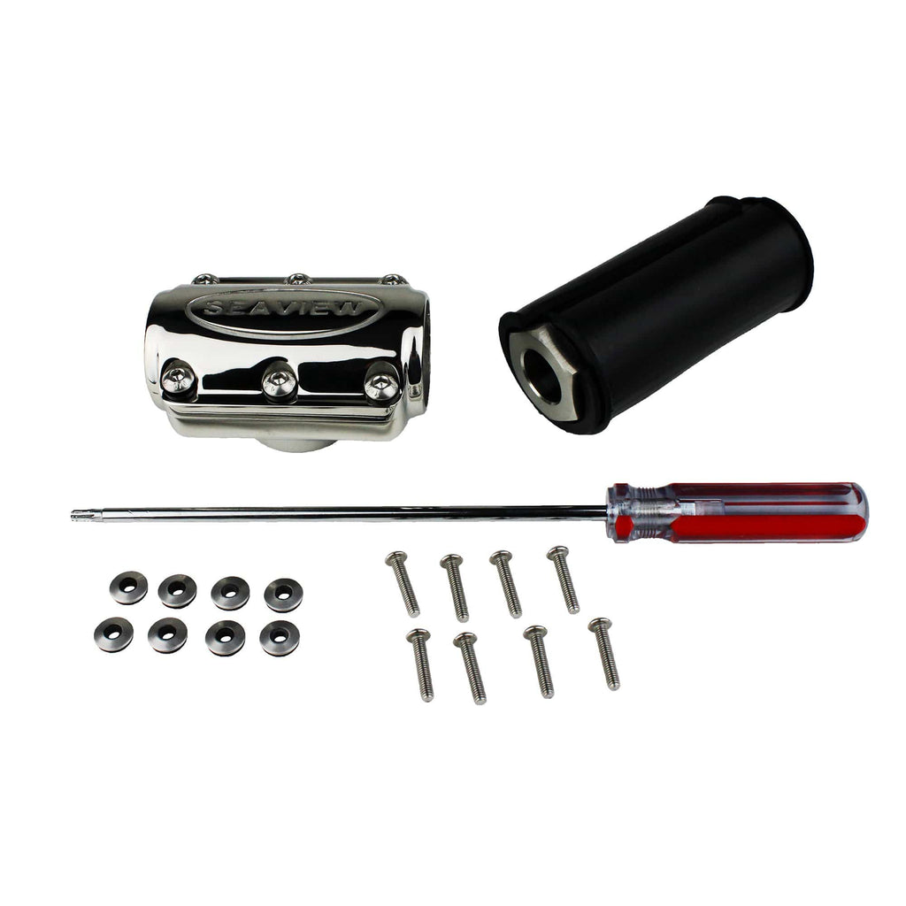 - A single high polished stainless-steel clamp is used to secure your Rail POD onto 1", 1.125" and 1.25" (25mm to 32mm) rails. Seaview Rail Pods fit standard 9.5", 12" and non-standard guard rails.