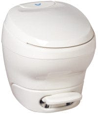 The Thetford BRAVURA Low Profile RV Toilet in Parchment (Model 31119) is a durable and stylish solution for your RV's bathroom. Featuring a lightweight plastic construction, this toilet is designed for easy installation and maintenance, while its low-profile design maximizes space in your RV. The ergonomic foot pedal provides hands-free flushing, and the full-bowl coverage ensures a thorough and clean flush every time.
