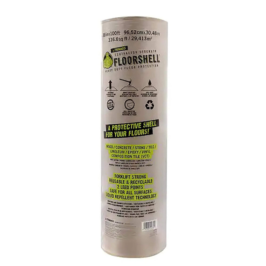 FloorShell is a robust floor protection solution crafted from 100% recycled fibers, making it both eco-friendly and reusable. It's designed to safeguard a wide variety of flooring types, including hardwood, concrete, stone, tile, linoleum, epoxy, vinyl composition tile (VCT), and more.
